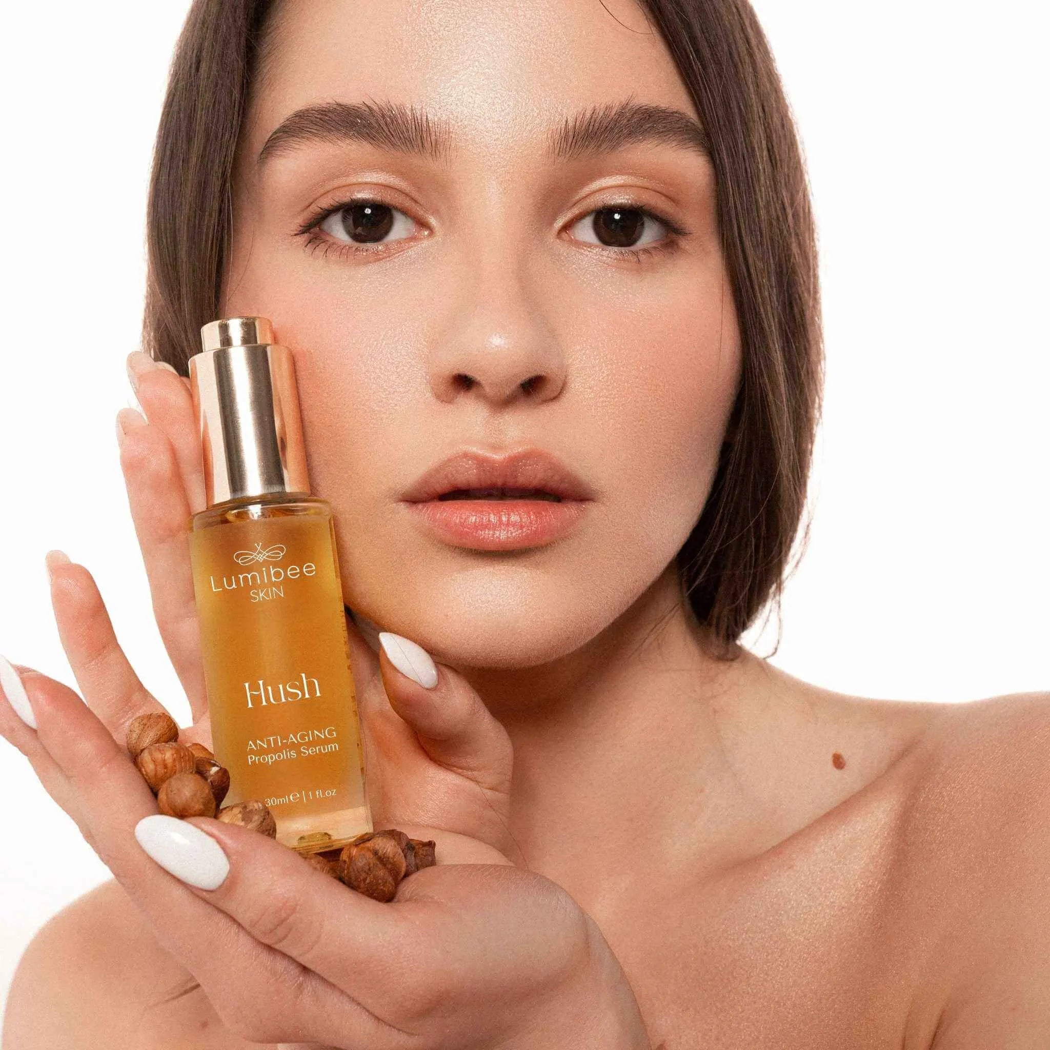 HUSH is like a hug for your skin - lightweight, silky, and a powerful ally against aging, redness, and dehydration. This serum blends precious organic oils, propolis, and Chlorella vulgaris algae to calm, regenerate, and protect, while restoring the skin’s natural glow and elasticity.